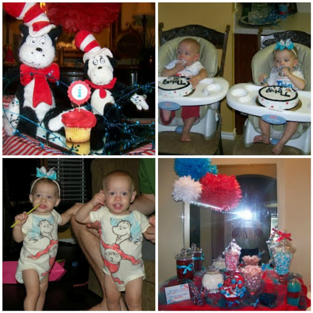 For my twin’s 1st birthday we celebrated with a Thing 1 and Thing 2 party. I loved this party and looking back at the pictures I can’t believe how much my babies have grown! (not to mention my party and picture taking skills have come a long way!)