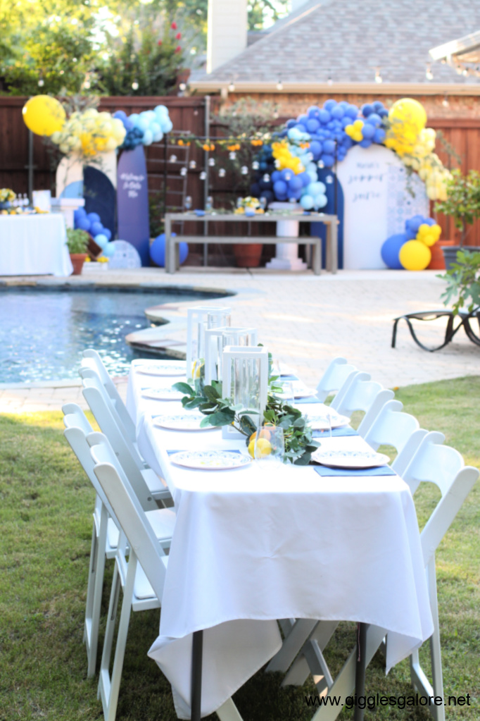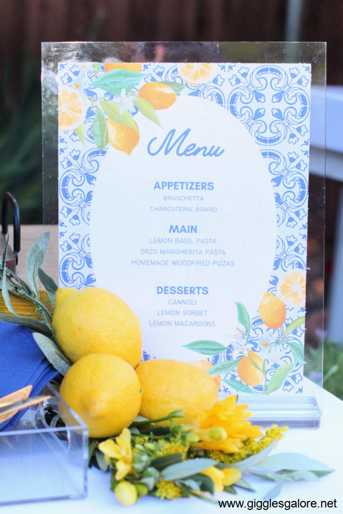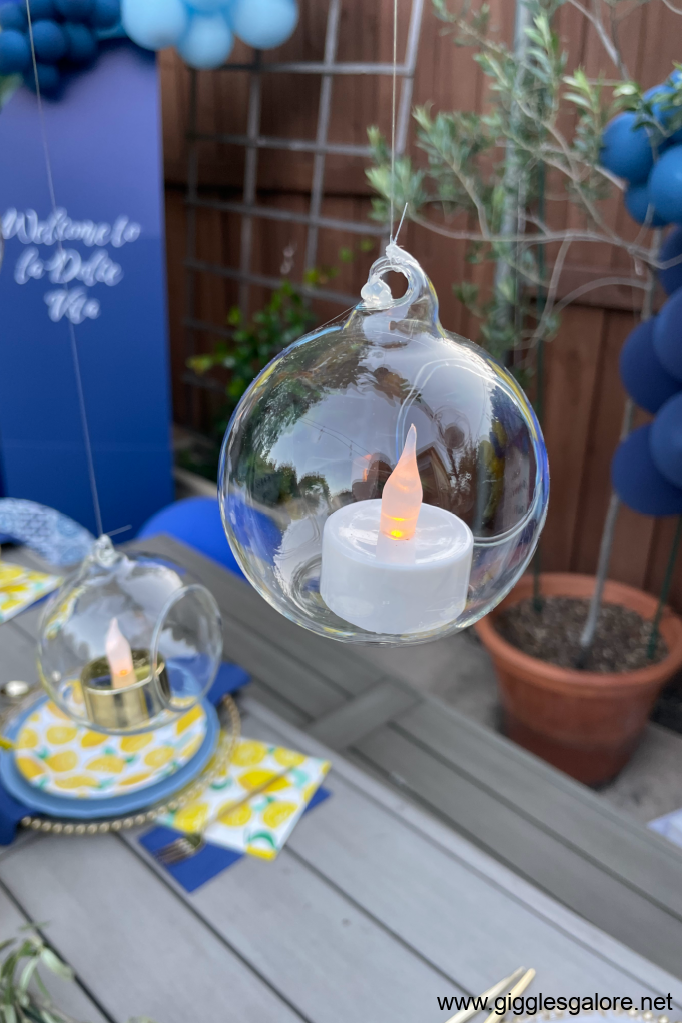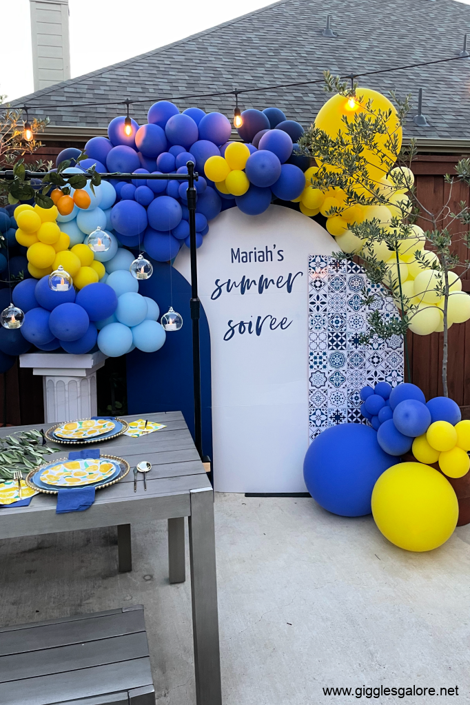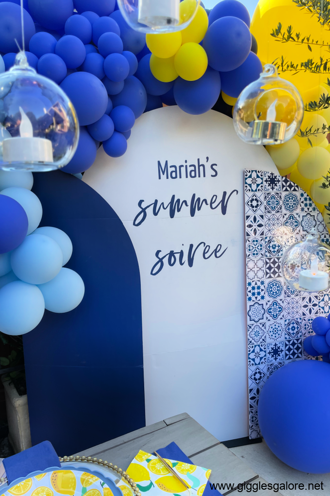 I wanted guests to feel like they had been transported to the Italian coast. I found most of my decor at Oriental Trading and Amazon, You can shop the look on my LTK site. Key elements to include: