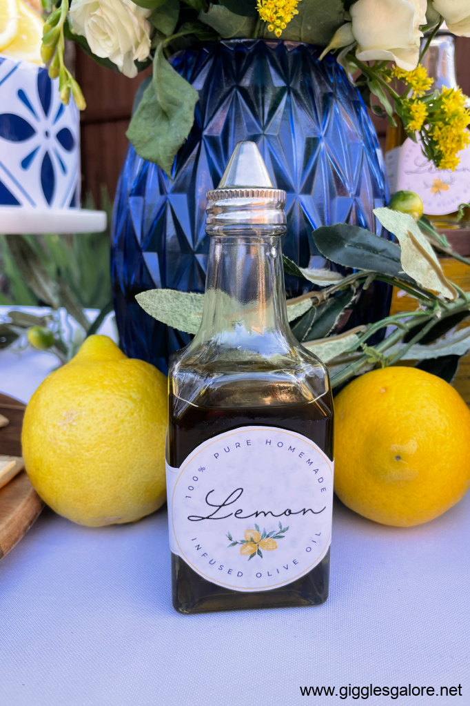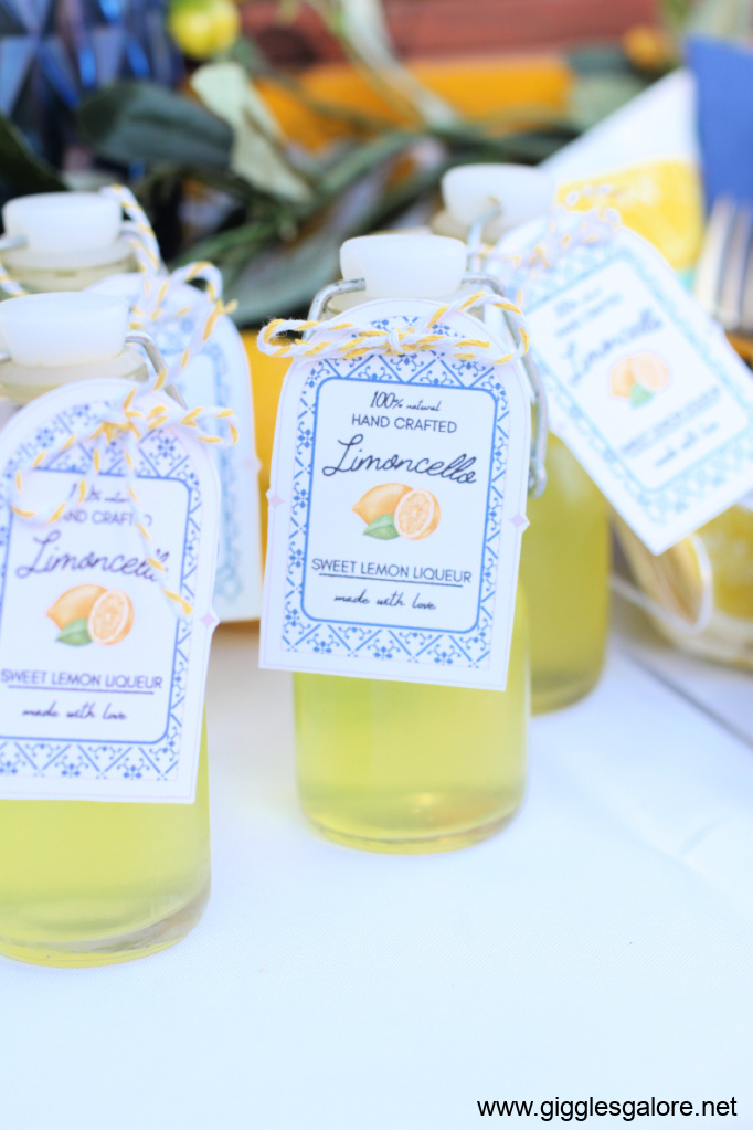Send guests home with keepsakes that echo the theme. I made mini bottles of limoncello and small jars of lemon-infused olive oil for everyone to take home. I created beautiful little labels that matched the theme, which you can Download for Free Here.