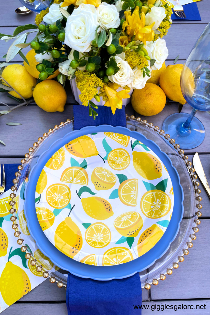 Tablescape: Use patterned plates, simple table runners, and fresh lemons as centerpieces. Add small vases with greenery or white flowers.
