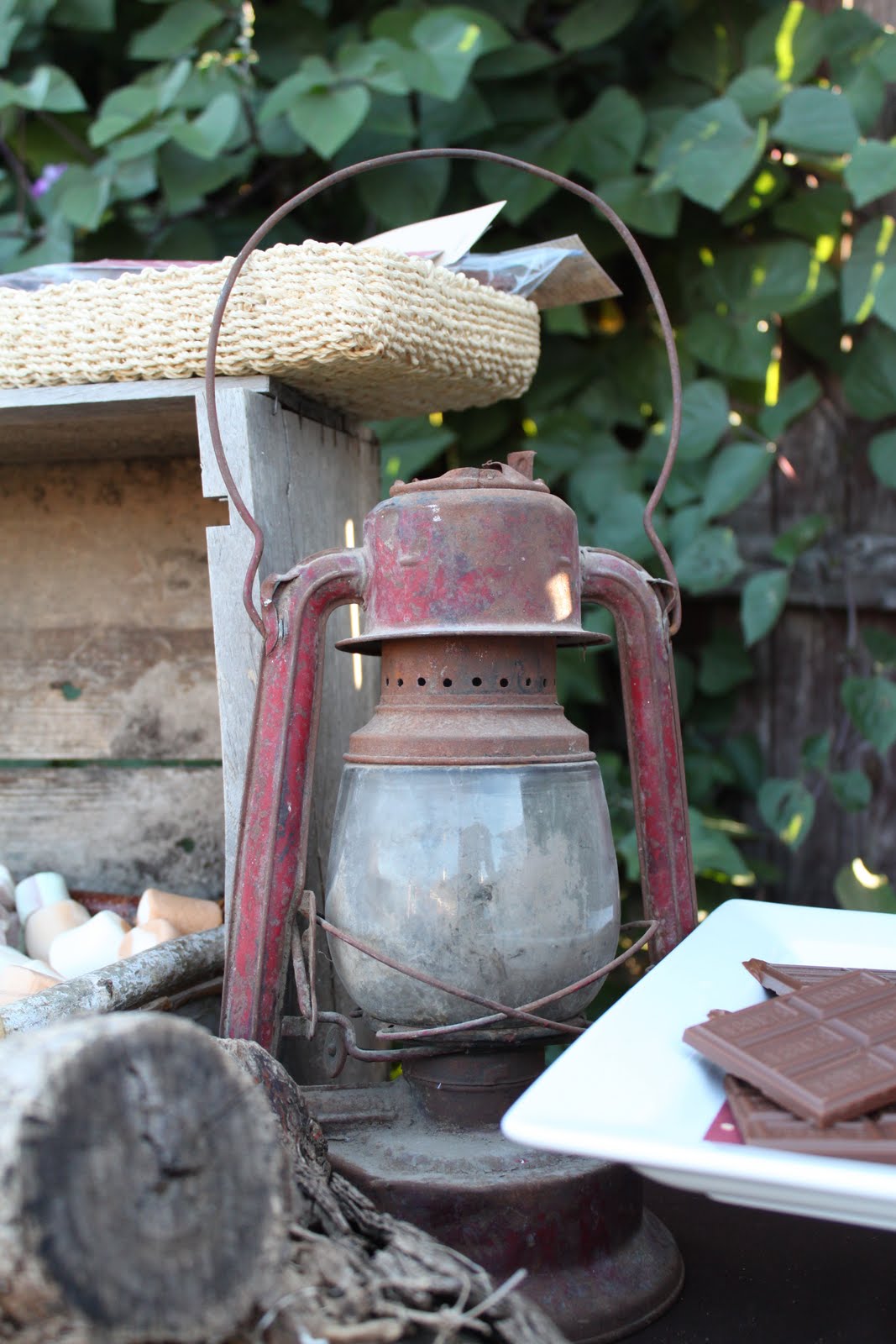 I set up a table in the backyard with camping items I’d gathered from around the house (and my mom’s) and added lots of different options to build the perfect s’more.
