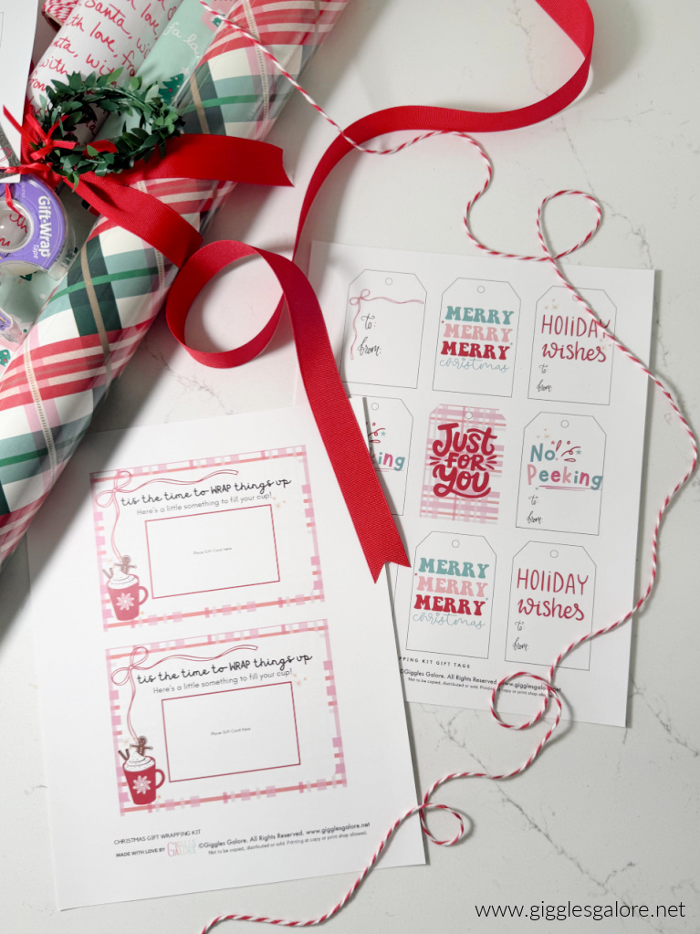 That’s why I’ve put together the ultimate Christmas Gift Wrapping Kit that includes everything one needs to finish wrapping their Christmas gifts, complete with a printable set of holiday gift tags to make your wrapping station organized, festive, and stress-free.