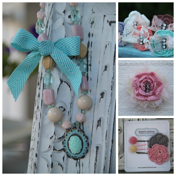 Keshet, a resourceful mom and entrepreneur took her passion for crafts and jewelry and turned them into handmade collections of vintage inspired accessories for girls of all ages. From hair clips and headbands to necklaces and bracelets these pieces are truly versatile and fashionable for girls of all ages. You pick the designs that suit your fancy, then choose your band and decide how you want to wear it! It’s as easy as that…they only hard part is deciding which beautiful piece you want.