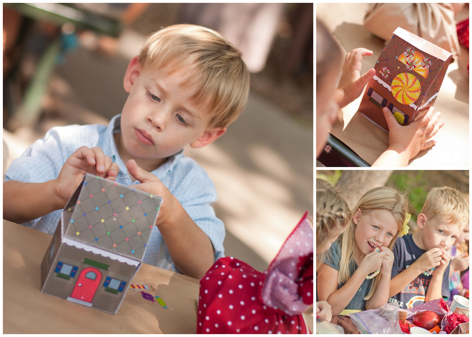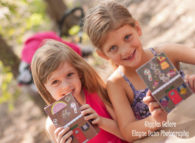 Games & Activities: We started the party with everyone decorating their own candy cottage. I originally wanted to make them just like we do at our Gingerbread House Decorating party, but decided it was more mess and with all our guest it was going to stretch my party budget. So I contacted Piggy Bank Parties and they created a 3D favor box complete with candy stickers that they kids could decorate. This idea actually worked out perfectly because we used the boxes for the other activities.
