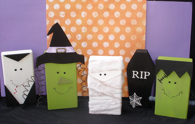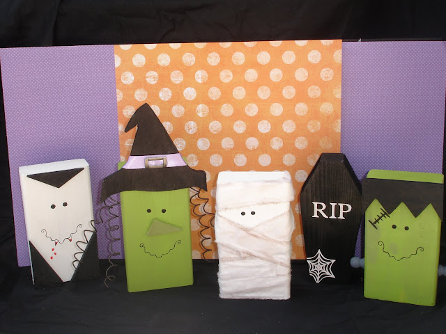 I adore Halloween, it is one of my favorite holidays! It’s just around the corner and time to start thinking about the millions of Halloween crafts I can’t wait to make. I have been busy making some pumpkins to sell (which you can see here or here) and while I was cutting 2×4’s I had a brilliant idea to make some fun monsters. I have seen a variety of ideas on the web and this is what I came up with.