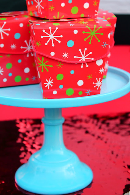I was able to make our chairs a bit more festive by adding Santa hat chair backs. Even the littlest detail can make a simple chair appear more fun!