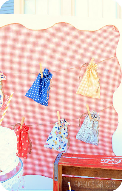 Pop over to Oink! The Blog to see how I made the drawstring party bags, which were also a big part of my party backdrop…and bonus they doubled as party favors too!