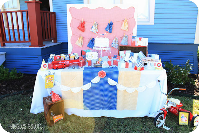 My sweet little twins just celebrated their 3rd birthday and we had a vintage “Dick & Jane” style birthday party to celebrate. I loved creating and planning this party, but when it came to the table backdrop I was stuck. Lately, my party backdrops have been stuck in a rut (usually fabric draped with pennant banners) and I really wanted to use something different that would make the simple table pop and this backdrop was PERFECT!