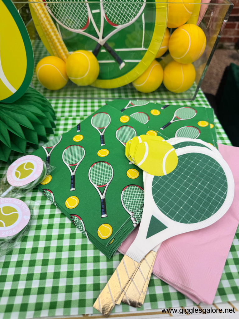 A few statement pieces like the tennis-themed party decor from Oriental Trading helped anchor the space, and layered textures kept the setup from feeling overly themed. The result was a cohesive look that felt fun without being overdone.