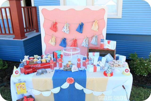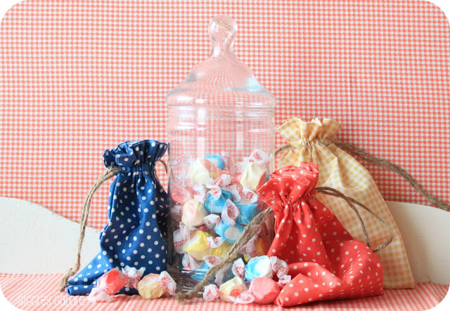 This project was inspired by a vintage bag of jacks that my grandma sent me to use at my twin’s birthday party. I had been looking for the perfect favor bag to match our vintage “Dick and Jane” party and these little bags were it. Not only did these little drawstring bags serve as party favors, they played a major part in my party design!