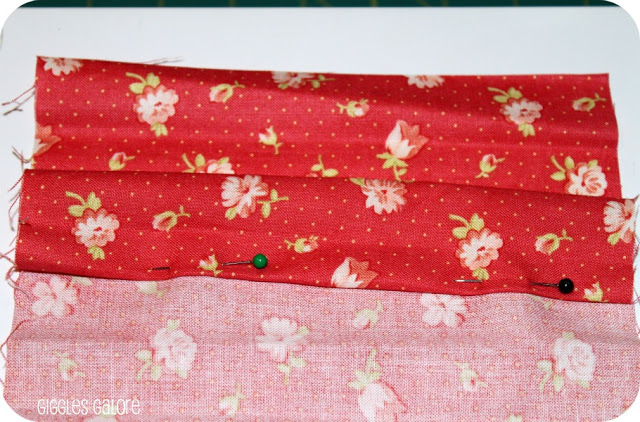 Fold down the top of the fabric to the where the side seam ends, turning under a 1/4″ for a smooth edge. Pin in place