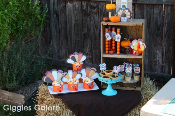 I created a few special treats for them to munch on including the paper cup turkey’s filled with popcorn, mini pecan pies and salted caramel cupcakes.
