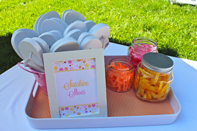 At the party the girls painted sunscapes, made gum ball necklaces and sun shoes.